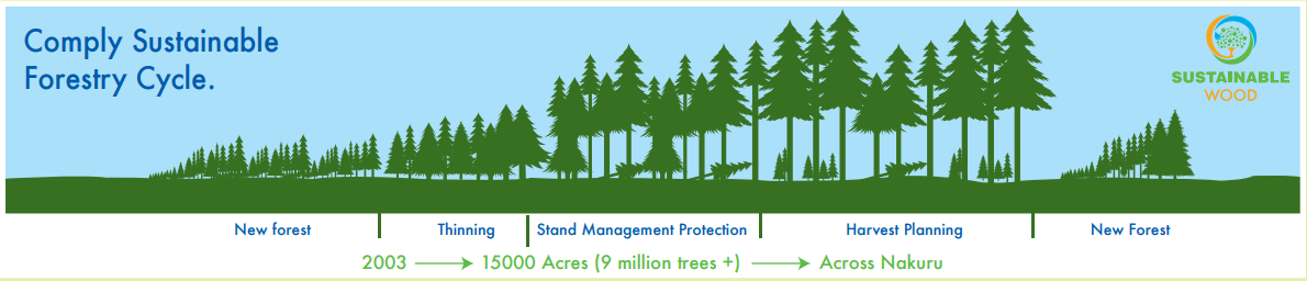 In our pursuit to protect the diverse forests of Kenya, we source our woods primarily from our own forest plantations and have put in place an extensive reforestation program working hand in hand with the Government of Kenya. We have planted over 9,000,000 trees across Nakuru since 2003. Our commitment to reforestation ensures sustainable usage of our wood production requirements.